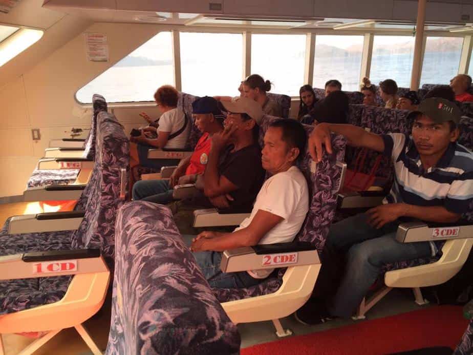 Coron Adasi’ndan El Nido’ya ulaşımda hızlı gemiyi tercih ettik (Süre 3,5 saat, ücret şehir vergisi ile 1700 Peso, 35 dolar). Zaman sorununuz yoksa normal gemi ile ulaşım 7 saat sürüyor. İki gemi fiyatı arasında yaklaşık olarak 10 dolar fiyat farkı var.