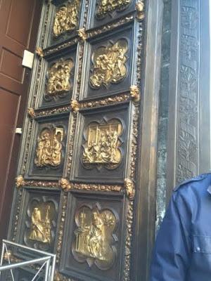 Vaftizhane ise kapıları ile nam salmış. Kapıların şöyle bir hikayesi var; Floransa’nın 1401 yılında vebadan kurtulmasının anısına yaptırılıyor. Donatello, Ghiberti, Brunelleschi gibi dönemin ünlü sanatçılarının katıldığı yarışmayı Ghiberti kazanıyor. Ghiberti’nin yarışma için sunduğu gotik tarzdan farklılık gösteren eserinin özelliği, bir erken Rönesans eseri olarak kabul edilmesiymiş. Anlaşılan o ki kapılar sanatçının ömrünü yemiş; Ghiberti Kuzey Kapılarını 28, Doğu Kapılarını 21 yılda tamamlamış. Doğu Kapılarının güzelliğine hayran kalan Michelangelo “Cennetin Kapıları” adını vermiş. Bronz kapılardaki panolarda İncil’den sahneler yer alıyor. Kapılardaki orijinal panolar katedralin müzesinde sergilenmekte. Vaftizhanenin tavanındaki 13. yüzyıla ait mozaiklerin de ayrıca görülmeye değer olduğunu ekleyip kapıyı, pardon konuyu kapatalım.