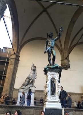 Pitti Sarayından sonra geri dönüp Ponte Vecchio’yu geçip, Ponte alle Grazie köprüsü yönünde devam ederken tesadüfen Uffizi müzesine ulaşıyoruz. Ertesi gün sabah programımızda olan müzenin yerini öğrenmekten çok mutlu oluyoruz. Uffizi’nin yanından meşhur Piazza del Signoria’ya çıkıyoruz. Açık hava müzesini andıran meydanda pek çok anıt ve heykel bulunuyor; Michelangelo’nun Davut heykeli ve hemen yanında Bandinelli tarafından yapılan Herkül heykelinin kopyaları var.