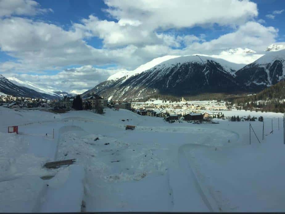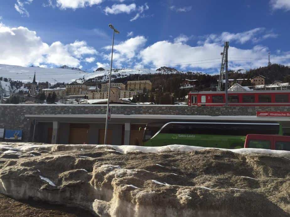 Müthiş manzaralı tren yolcuğumuz St. Moritz Tren İstasyonu’nda sonlandı. St. Moritz de popüler bir kayak merkezi.