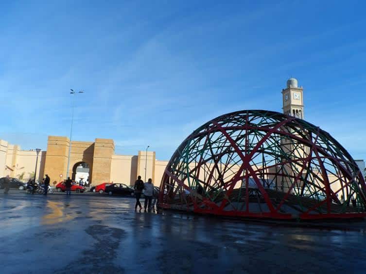 Bu caddeyi bir kesit kabul edersek sağ tarafında, şehirler arası otobüs terminali (Route Quiad Ziane) ve tren garının (Hmadi Bulvarı) yer aldığı yerleşim alanları mevcut. Buradaki en dikkat çekici yer, Mohamed V Bulvarındaki Marche Centrale; burası bizim hal gibi bir yer. 1917 yılında yapılan Mağribi tarzı bir kapıdan girilen alanda, sebze, meyve, deniz ürünleri satılıyor, ayrıca ucuz esnaf lokantaları da var. Bu lokantaları denedim, benim için sonuç hüsrandı. Gezmek için ilginç bir yer; gelen geçen ayak üstü iki istiridye yiyip öyle devam ediyorlardı yola, bizdeki midye dolma hesabı. Tezgahlarda çeşit çeşit deniz ürünlerinin yanında, meyveler, sebzeler, türlü hurma çeşitleri ve argan yağı bazlı ürünler de burada bulunabilir. O resimde gördüğünüz de, evet kaplumbağa ve evde beslemek için aldıklarını hiç sanmıyorum.