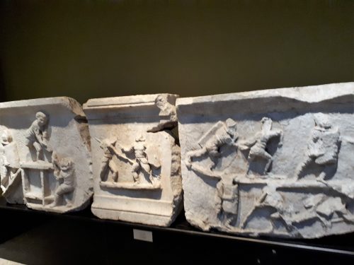 “Gladyatörler Kibyra’da” başlığı altında sergilenen duvar resimlerinde ve kabartmalarında, antik dönemin gladyatör gösterileri canlandırılmış. Bu gladyatörlerin çoğunluğu, kanun kaçaklarından, savaş esirlerinden, kölelerden oluşmaktaymış. Asillerin ve halkın, bu ölümüne yapılan gösterileri hangi duygular ile izlediklerini anlamak çok zor.