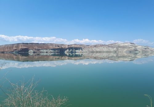 Sokaklarda, restore edilmiş birkaç ev ile mevcut haliyle kullanılan evlerin arasında yürürken biraz ileriden göl görünüyor.