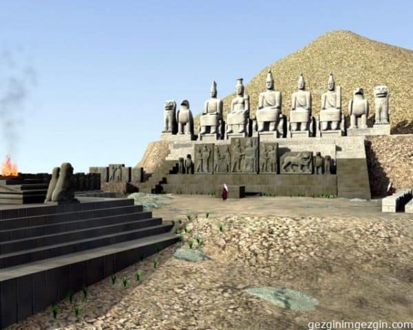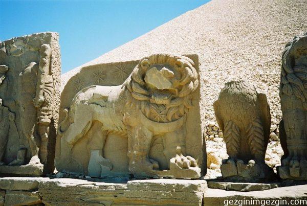 M.Ö. 62 yıllarında yapılan mezar tümülüsünde, doğu ve batı teraslarında birbirine benzeyen dev heykeller var. Burası yerleşim yerlerinden uzakta, ıssız, virajlı, dik yokuşları olan bir yer. 2000 yıl boyunca sadece katırlarla ulaşılabilmiş.
