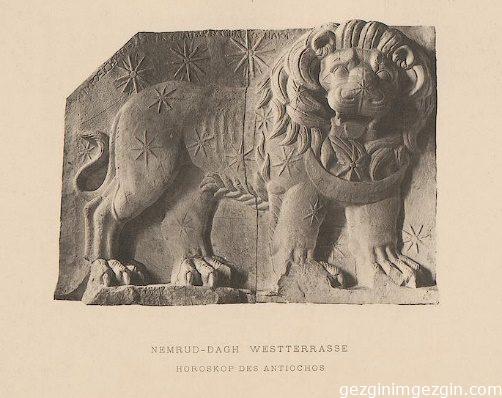 Sağa doğru yürüyen aslan figürünün bulunduğu horoskop 175 santim boyunda ve 240 santim genişliğinde ,0,47 santim kalınlığında kabartmalı kum taşından yapılan bir horoskop imiş. Aslan figürünün boynunda bir hilal, gövdesinde 8 ışınla karakterize edilmiş 19 yıldız bulunuyormuş.