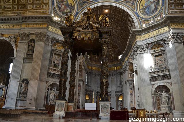 Müzeyi gezmeyi tamamladıktan sonra tekrar Saint Peter’s Meydanı’na döndük. Sabahki kalabalıktan eser kalmamıştı. Rahat bir şekilde içeri girdik. Vatikan’daki Aziz Petrus Meydanı, Napolili sanatçı, heykeltıraş ve mimar olan Gian Lorenzo Bernini tarafından Papa VIII. Alexander için 1656-1667 yılları arasında yaptırılmış.