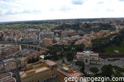 Bazilikanın Kubbesi‘ni Michelangelo tasarlamış. 136 metre civarında yüksekliğinin kubbenin bitmiş halini görmek ise maalesef kendisine kısmet olmamış. Buraya çıkmak için 2 yol var; Ya asansöre binip sonra 350 basamak tırmanmak ya da tüm yolu tırmanarak çıkmak. Asansörle çıkış 10 Euro, merdivenden çıkış 8 Euro. Biz asansörlü çıkışı tercih ettik. Asansörün ulaştığı noktadan sonraki 350 basamağı çıkmak da oldukça yorucuydu. Ancak merdivenleri tırmanıp son noktaya ulaşınca soluğumuz kesildi. Roma ayaklarımızın altındaydı ve muhteşem bir manzara bizi bekliyordu.