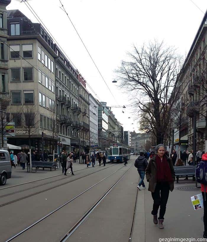 Şehrin en önemli, en hareketli ve en zengin caddesi Bahnhofstrasse, İstasyon’dan başlayarak Zürih Gölü’ne kadar uzanıyor. Cadde üzerinde İsviçre ve Dünyanın ünlü markalarının mağazaları var. Yine ülkenin finans merkezleri de bu caddede sıralanmış.