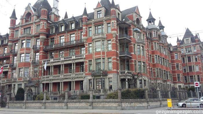 Şehrin bir başka göz alıcı bölgesi Zürih Gölü civarına yürüyerek gidilebilir. Biz zaman kazanmak için Hauptbahnhof’un önünden Bahnhofstrasse Caddesinden geçen 6 no’lu tramvaya binerek Bahnhof Enge’de indik. Enge istasyon binası da son derece ihtişamlıydı. Buradan General Guisan Qai’ye çıkıp biraz yürüyerek Bürkplatz’a ulaştık. General Guisan Qai üzerindeki görkemli tarihi binalardan gözümüzü alamadık.