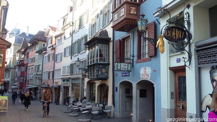 Şehrin en önemli, en hareketli ve en zengin caddesi Bahnhofstrasse, İstasyon’dan başlayarak Zürih Gölü’ne kadar uzanıyor. Cadde üzerinde İsviçre ve Dünyanın ünlü markalarının mağazaları var. Yine ülkenin finans merkezleri de bu caddede sıralanmış.